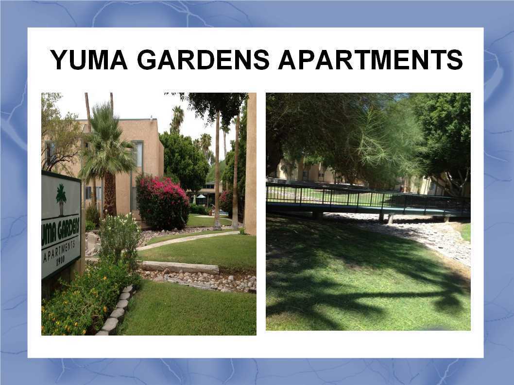 Yuma Gardens an Oasis in the desert, with lush landscaped grounds. We offer ground and 2nd floor apartments. With 2 pools,